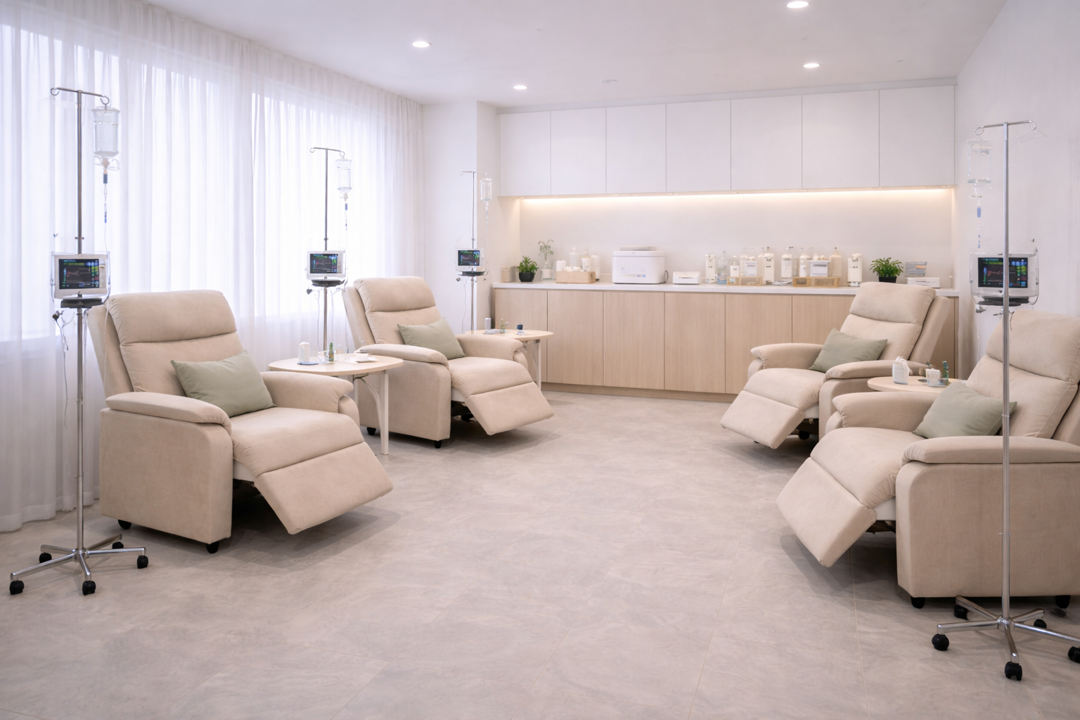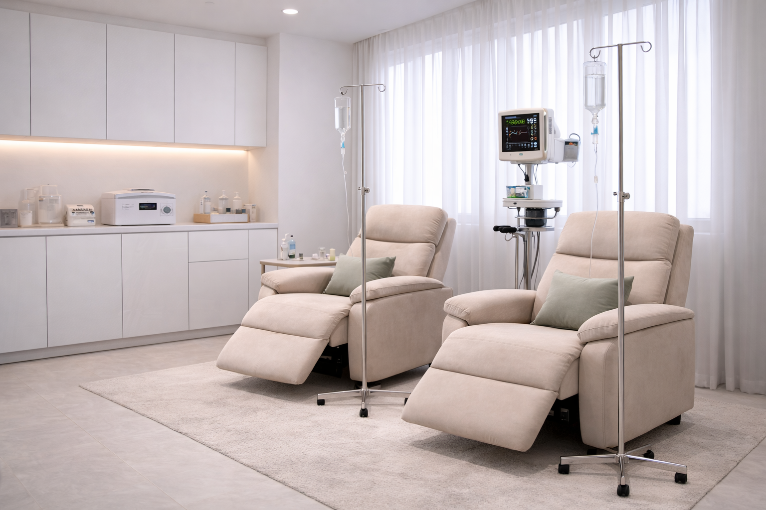 Витаминотерапия проходит совершенно безболезненно, в комфортных условиях и длится от 45 до 60 минут. В время пациент может слушать музыку, читать, смотреть кино или немного подремать. После капельницы рекомендуется провести в медцентре еще 30 минут, чтобы отдохнуть и убедиться в отсутствии побочных реакций на препарат. Затем пациент может сразу вернуться к привычным делам.